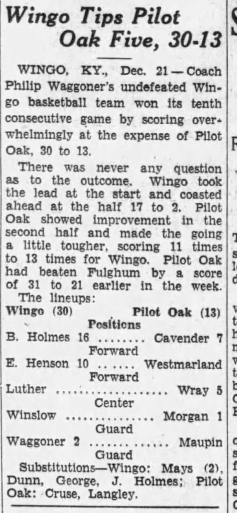 Wingo Defeated by Mayfield – 1944