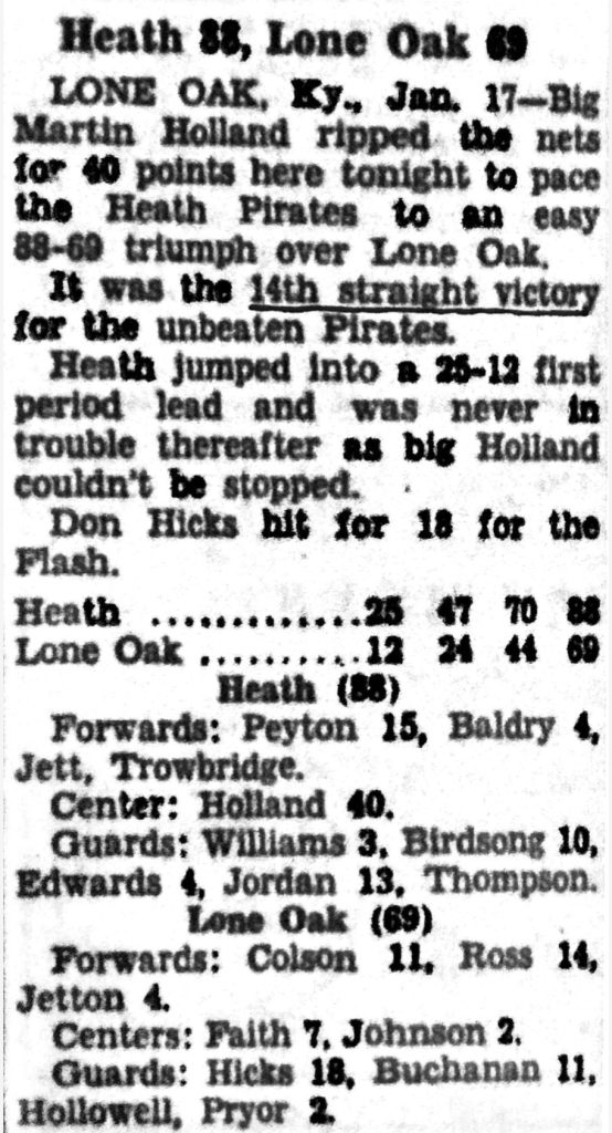 Heath Wins 12th Straight Reidland Bows 1-13-56