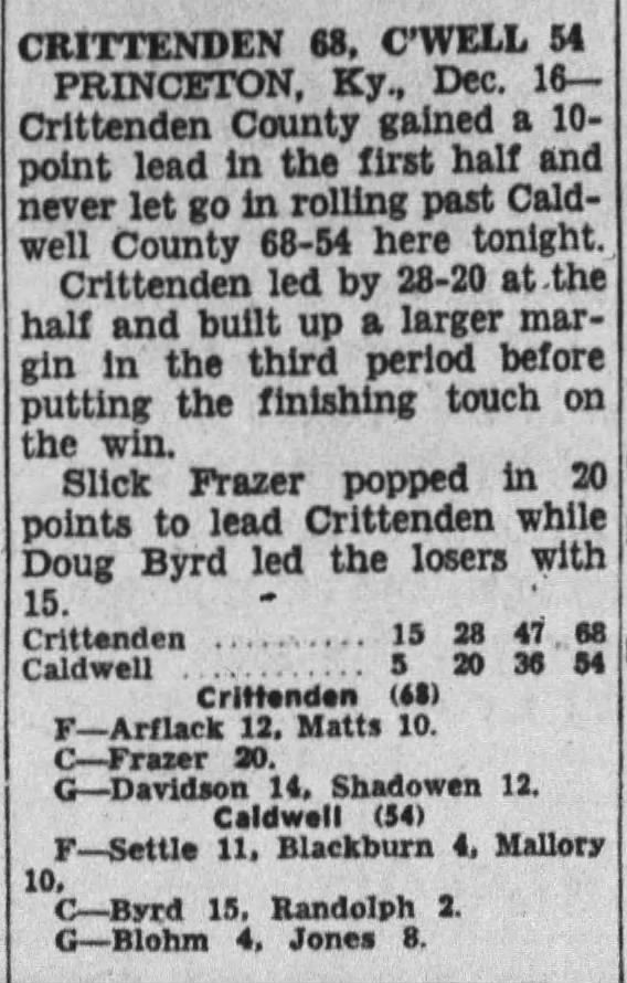 Crittenden County Defeats Caldwell County – 1960