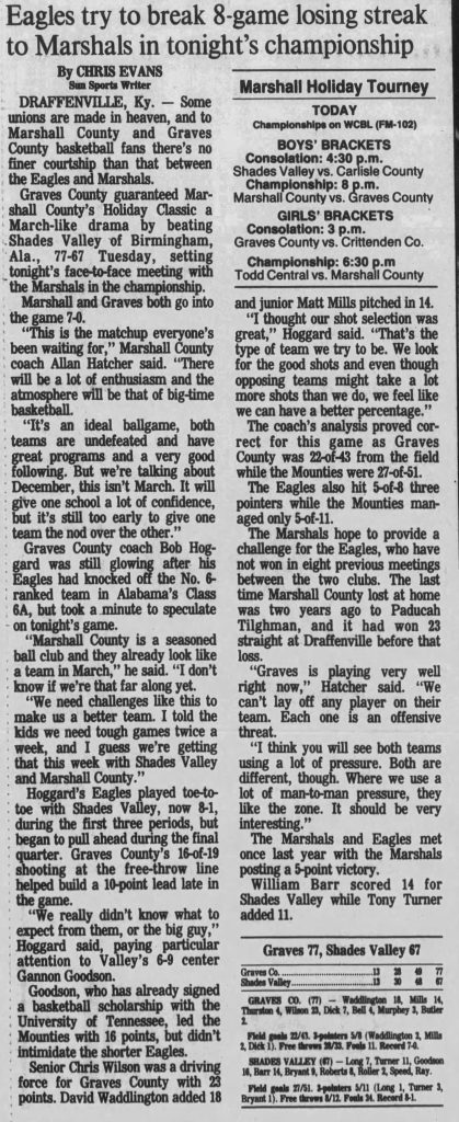 Graves County Defeats Shades Valley – 1988