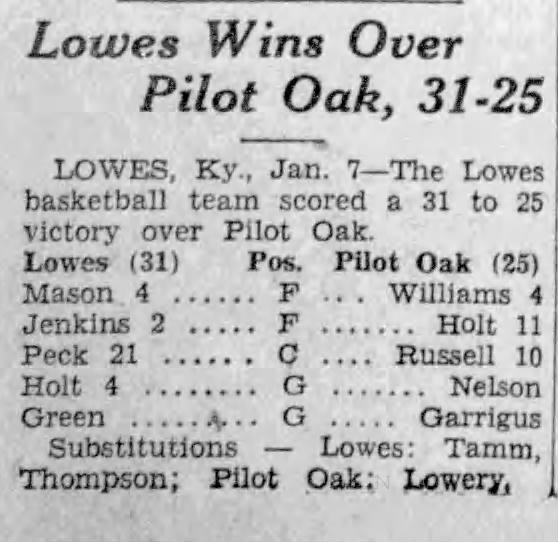 Lowes Defeats Pilot Oak – 1935