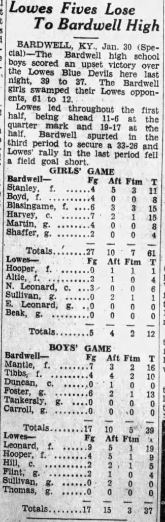 Lowes Girls Lose to Bardwell – 1932