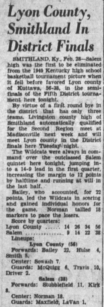 Lyon Co., Smithland in Fifth District Finals – 1949