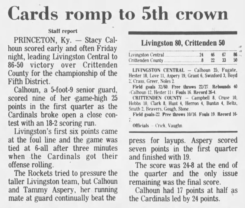 Stacy Calhoun Scores 25 to Lead Livingston Central to 5th Crown – 1986